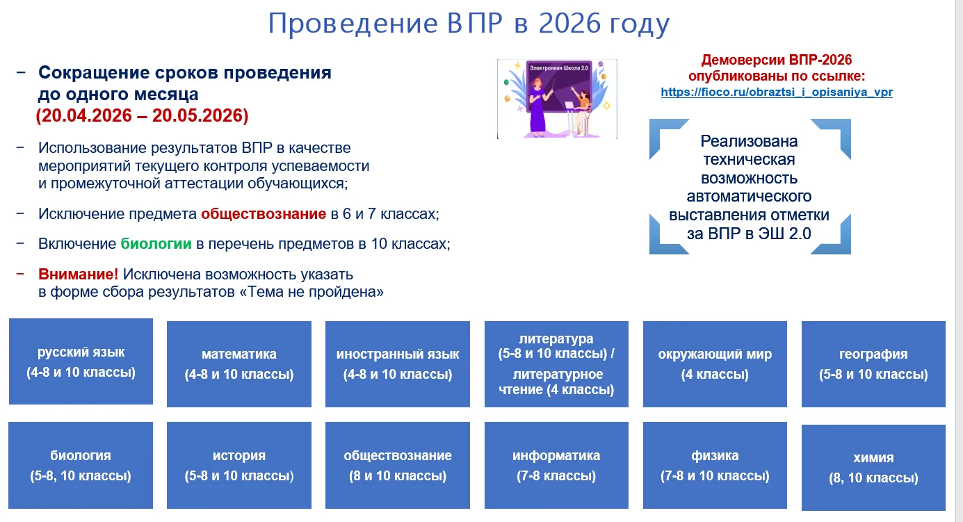 Расписание проведения ВПР - 2026 (апрель - май) |