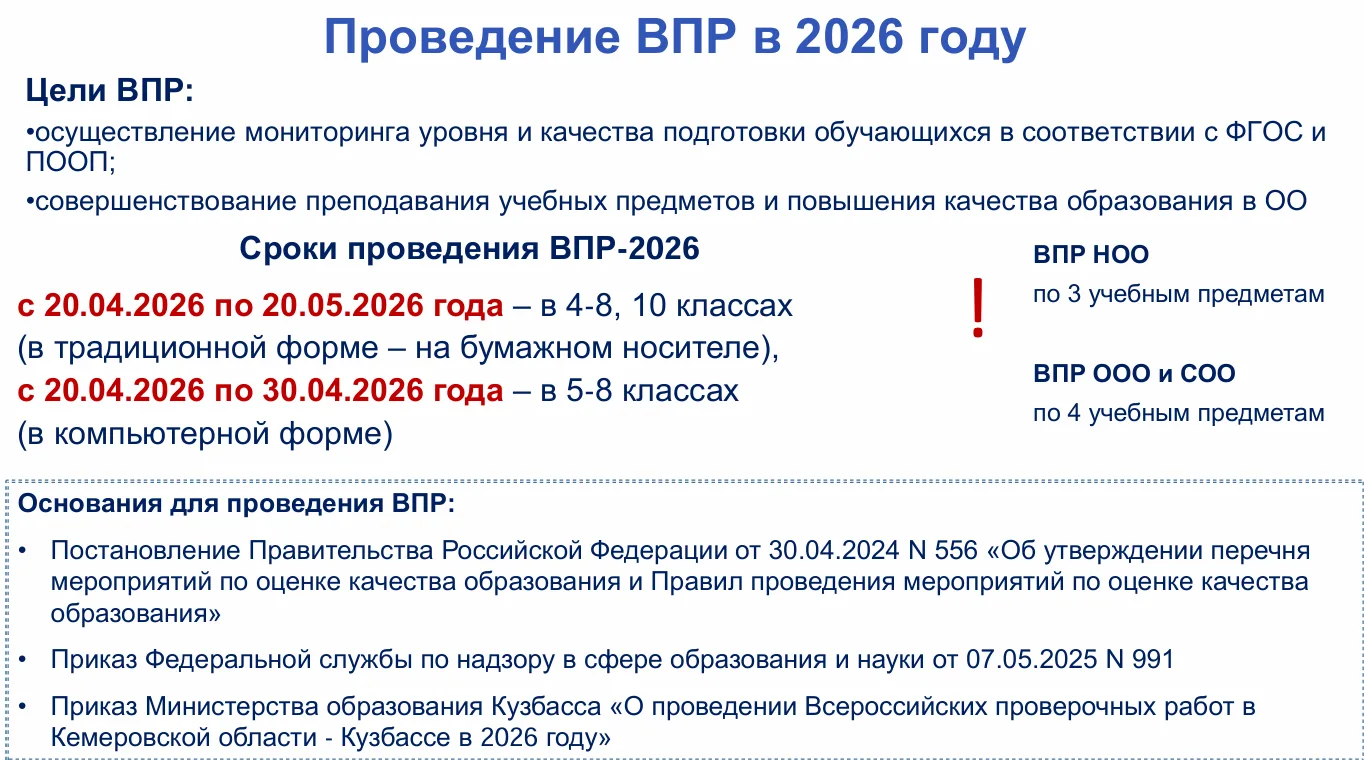 Приказ Министерства образования Кузбасса № 965 от 25.03.2026 " О проведении ВПР в 2026 году"