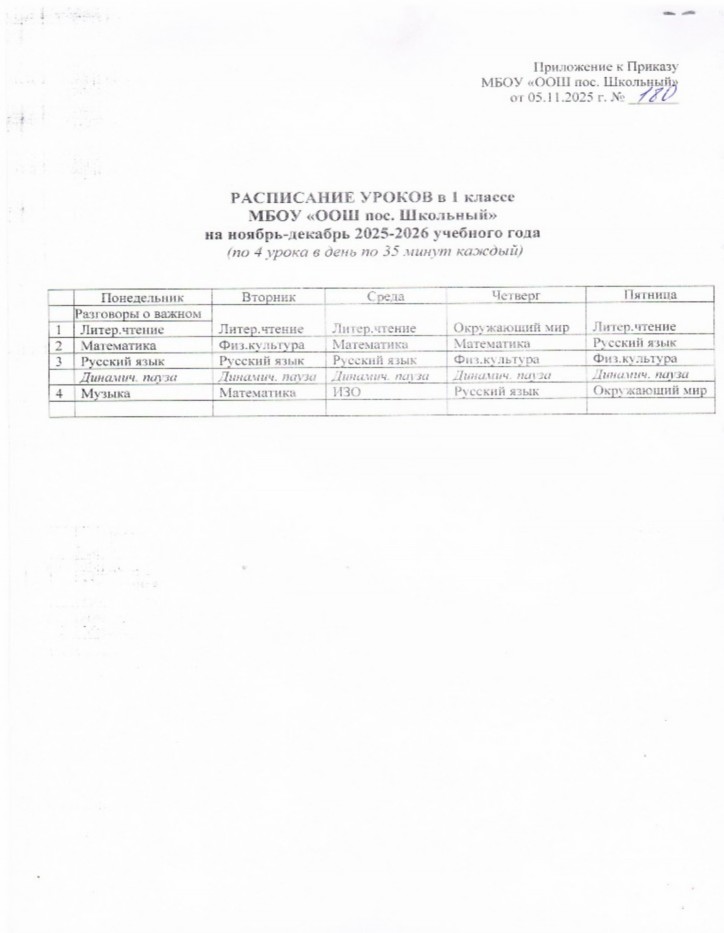 Расписание начальной школы
